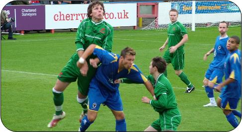 Ten men Ramsgate struggled to get near the don's box, as when Ball got the football, franchise sub Antony Howard would foul him every time. Even though the whistler would give a free kick, you would think 6 fouls in a short space of time would earn him a caution for continual infringement of the laws, but Howard knew he was getting away with it as he was not wearing green! Jim Ward gambled for the last 20 minutes, when Karl Barron replaced Andy Hadden, but in truth it was always going to be a hard task, as the Franchises continued to push for a third goal. Hatton should have had a hat-trick, but shot wide of the post when he received the ball unmarked on the edge of the Ramsgate area. Tony Finn had a superb game for the home side, despite being restricted by the close attention of Ashley Burton, and the pacey winger even nutmegged Burton to whip in a cross for a Daniel Webb header, which was excellently tipped over by Wilkerson.